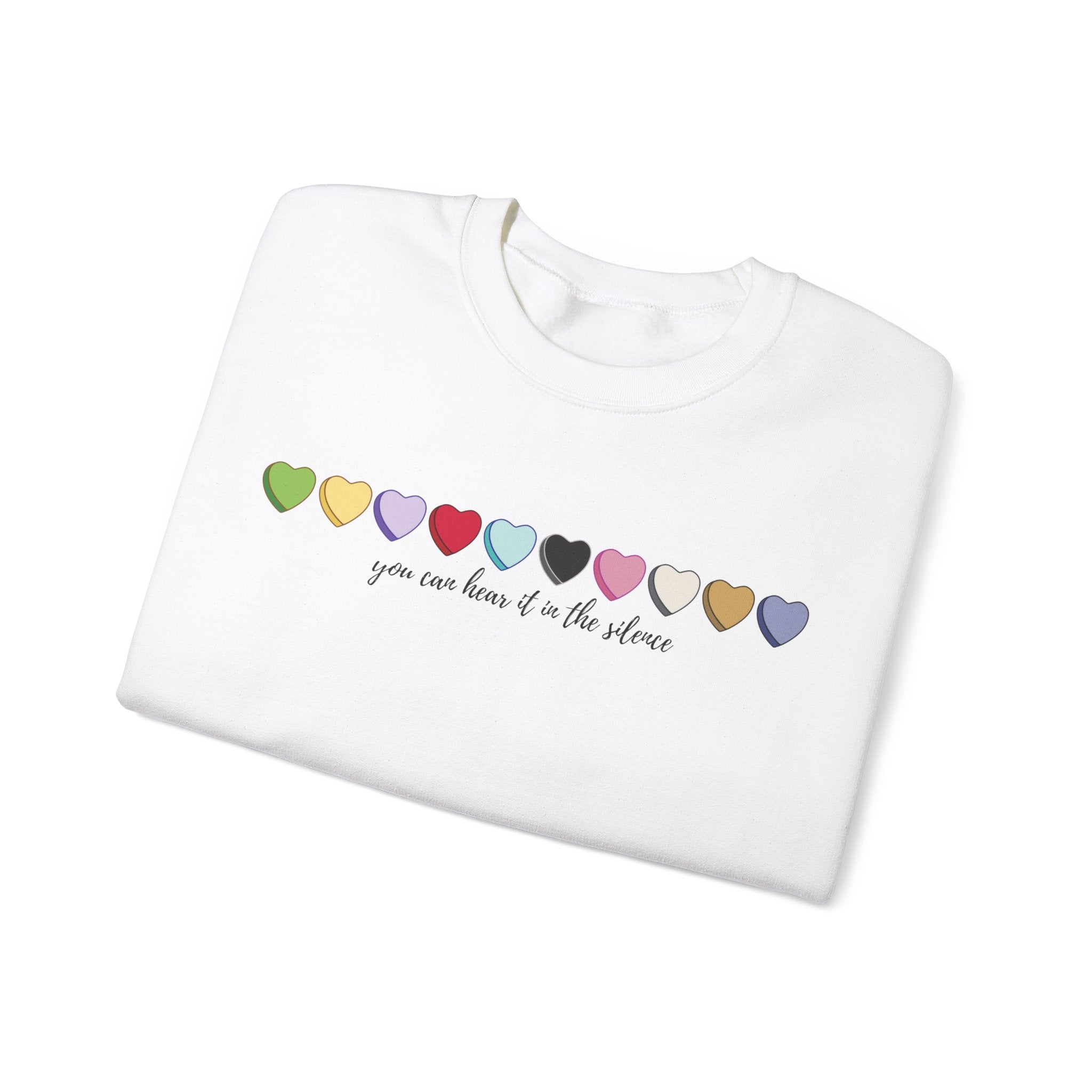 you can hear it in the silence candy heart sweatshirt